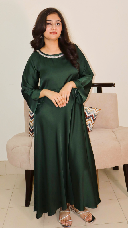 Dark Jade Green Color Maxi Dress