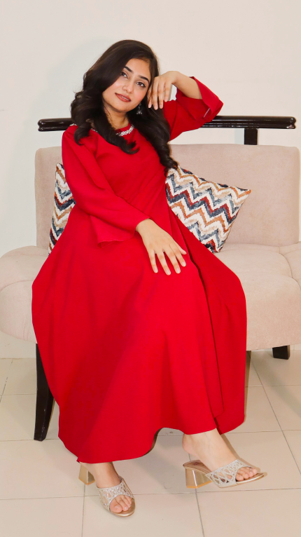Full-length umbrella maxi dress with soft fabric and a graceful flared silhouette for effortless style and Crystal Lace on neckline.